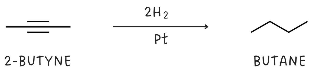Alkynes can be reduced to alkenes and alkanes. The complete reduction of alkyne yields an alkane.