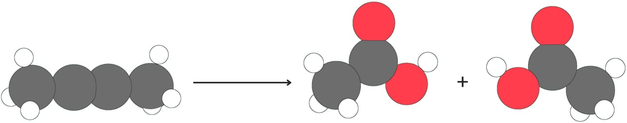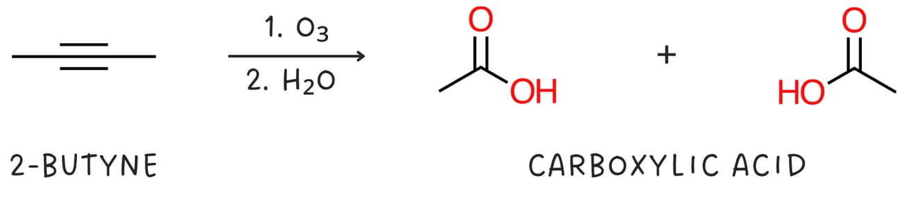 Internal alkynes produce two carboxylic acids