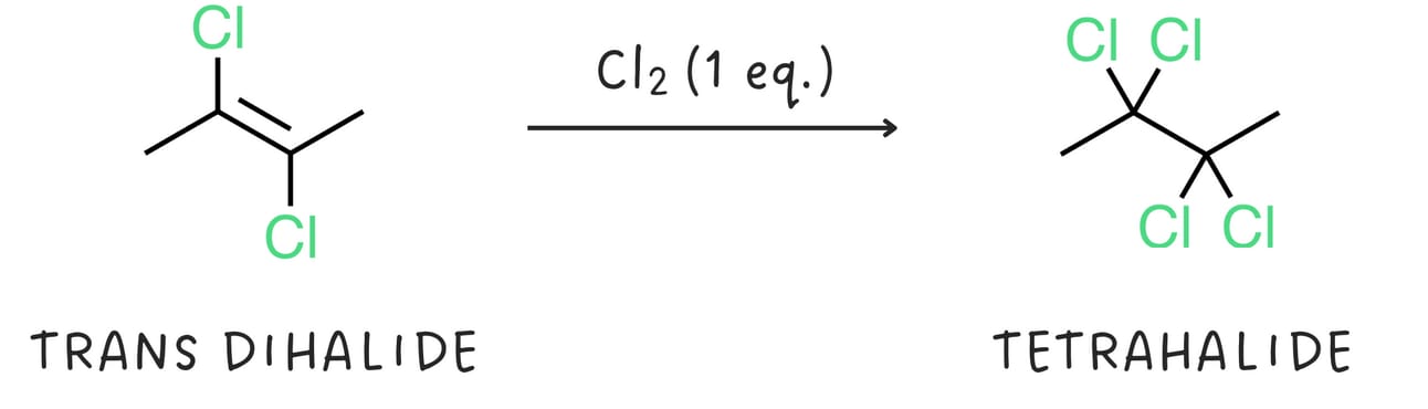 The dihalide can react with another equivalent of halogen to produce a tetrahalide.