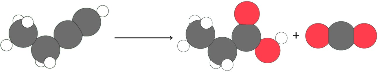 Terminal alkynes produce one carboxylic and CO2