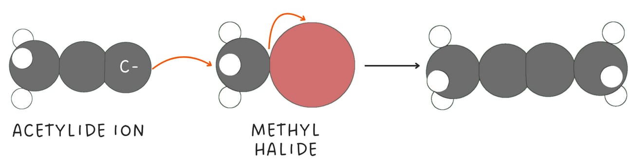 These reactions are called alkylation reactions and provide a versatile way to form C-C bonds and extend the length of a carbon chain.